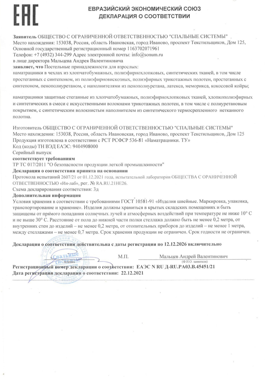 Гарантия распространяется на матрасы, кровати, основания и аксессуары представленные на нашем сайте.